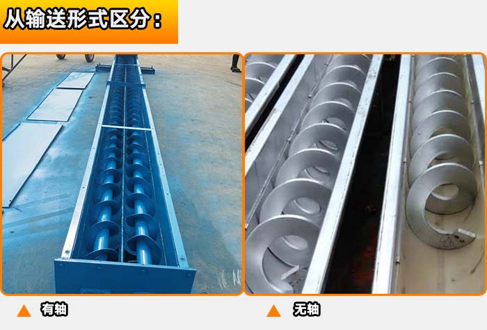 螺旋輸送機(jī)從輸送形式上可分為:有軸和無軸螺旋之分。