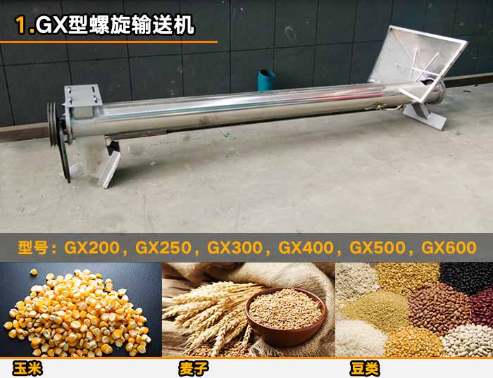 GX型螺旋輸送機(jī)是較老的螺旋輸送設(shè)備,其有單管于雙管兩種形式,適用于水平的輸送傾斜角不能夠超過20°。可輸送一些塊狀的(小塊狀物料)例如:麥子,玉米,黃豆等糧食。