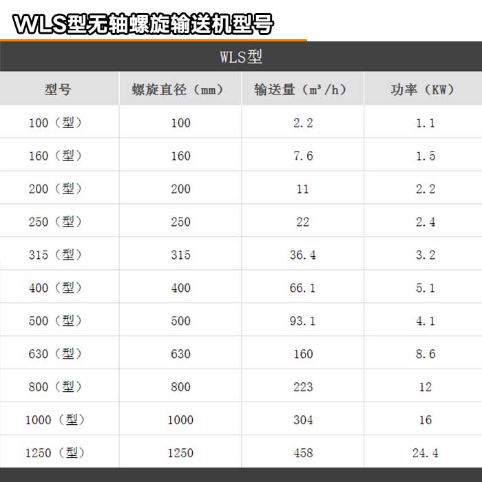 型號(hào);無軸螺旋輸送機(jī)的型號(hào)如下圖