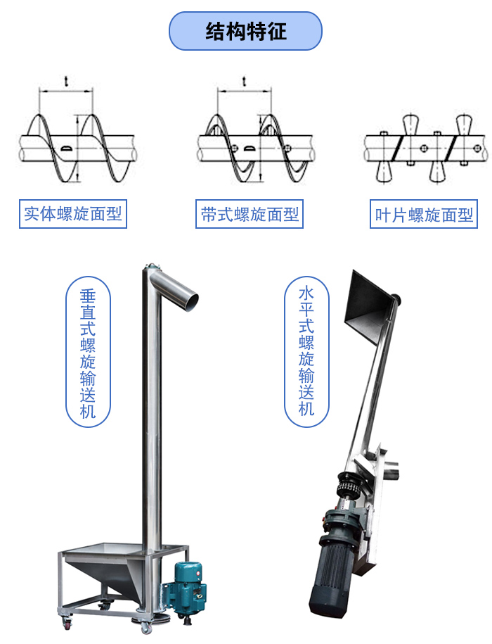 (2)螺旋輸送機的螺旋葉片有左旋與右旋兩種旋向。