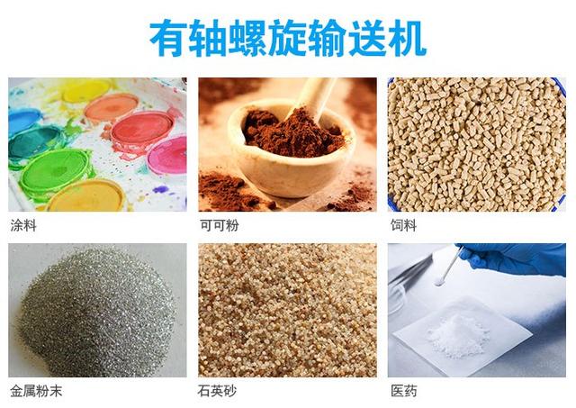 有軸葉片適用輸送的物料:粉料、小顆粒物料(如:面粉、大豆、混凝土等),如果輸送黏性物料如污泥就會粘在內(nèi)管軸和葉片上,輸送塊狀的物料容易卡死。