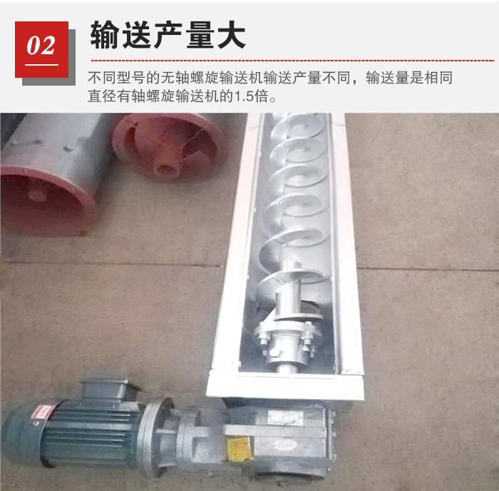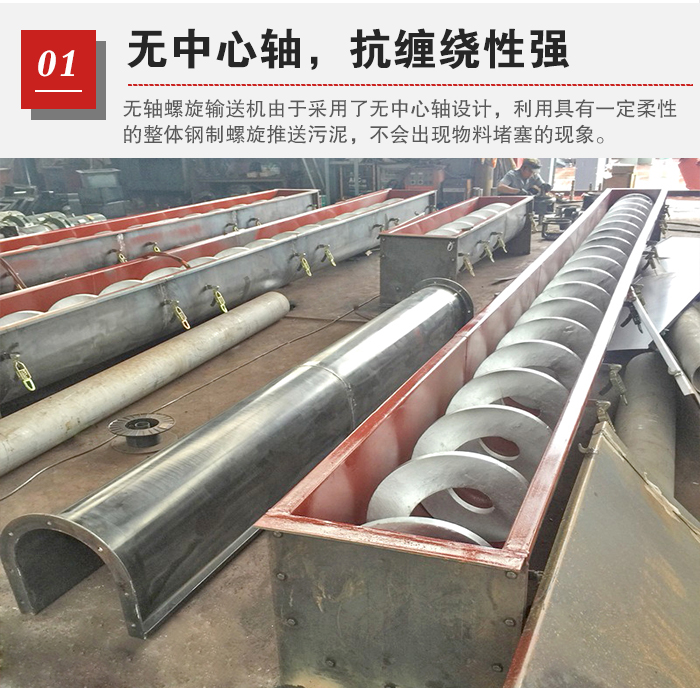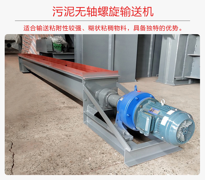 污泥中含有大量的雜質,使用傳統(tǒng)輸送機對其進行輸送很容易出現(xiàn)堵料現(xiàn)象,嚴重影響輸送效率,無軸螺旋輸送機由于采用了無中心軸設計,利用具有一定柔性的整體鋼制螺旋推送污泥,其抗纏繞性強,不會出現(xiàn)物料堵塞的現(xiàn)象。