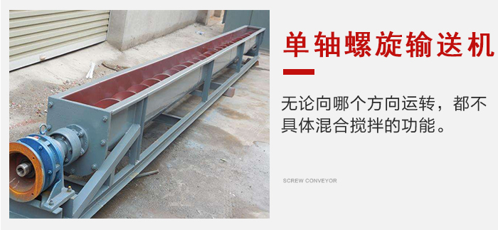 單軸螺旋輸送機無論向哪個方向運轉(zhuǎn),都不具體混合攪拌的功能,當物料放入進料口時,會自動將物料轉(zhuǎn)動到中間,混合到一起。