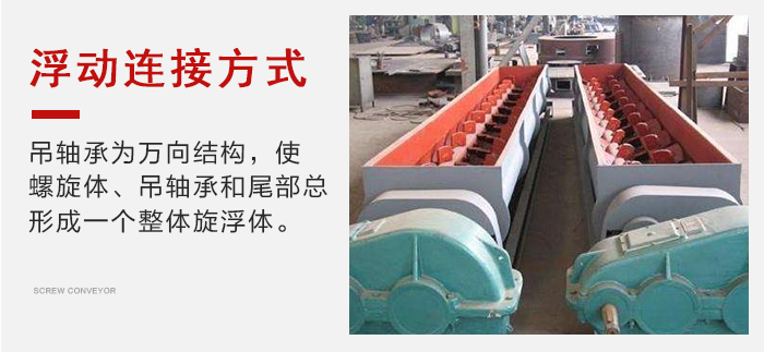 各傳動部位均采用浮動連接方式,吊軸承為萬向結構,使螺旋體、吊軸承和尾部總形成一個整體旋浮體,在一定范圍內可以輸送阻力自由旋轉避讓,不卡料,不堵料。