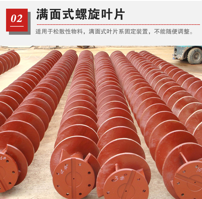 滿面式螺旋葉片/實體螺旋葉片 滿面式適用于松散性物料,滿面式葉片系固定裝置,不能隨便調整。