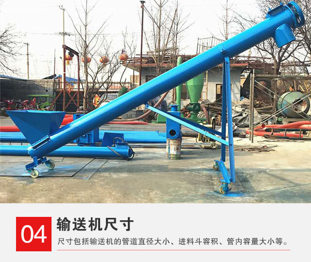 大傾角螺旋輸送機的尺寸包括輸送機的管道直徑大小、進料斗容積、管內(nèi)容量大小等。這些尺寸都會直接波及大傾角螺旋輸送機的輸送能力,更重要的是價格的高低也受其影響。