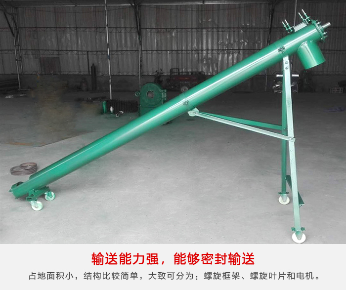 大傾角螺旋輸送機:尺寸緊湊,斷面尺寸小,占地面積小,結構比較簡單,大致可分為:螺旋框架、螺旋葉片和電機;