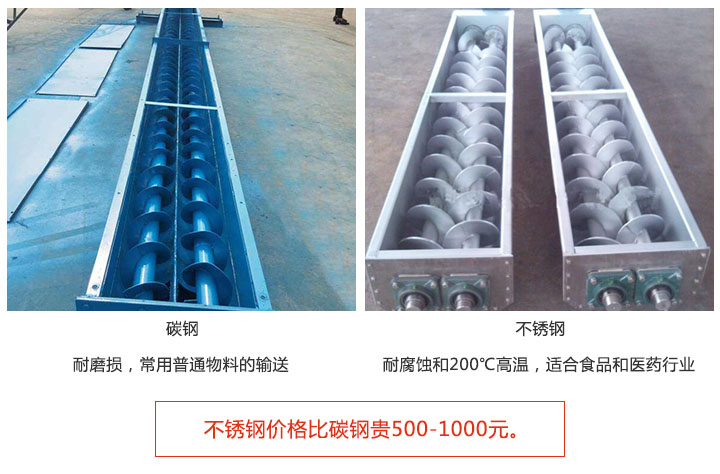 雙螺旋輸送機(jī)材質(zhì)分碳鋼和不銹鋼;