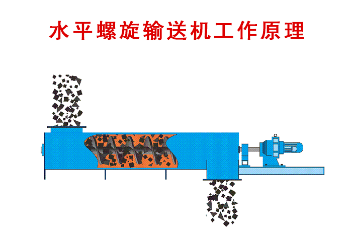 水平主要由驅動裝置、中間軸承、螺旋軸、螺旋體、螺旋葉片、頭部、中部、尾部、進出料裝置等部件組成。