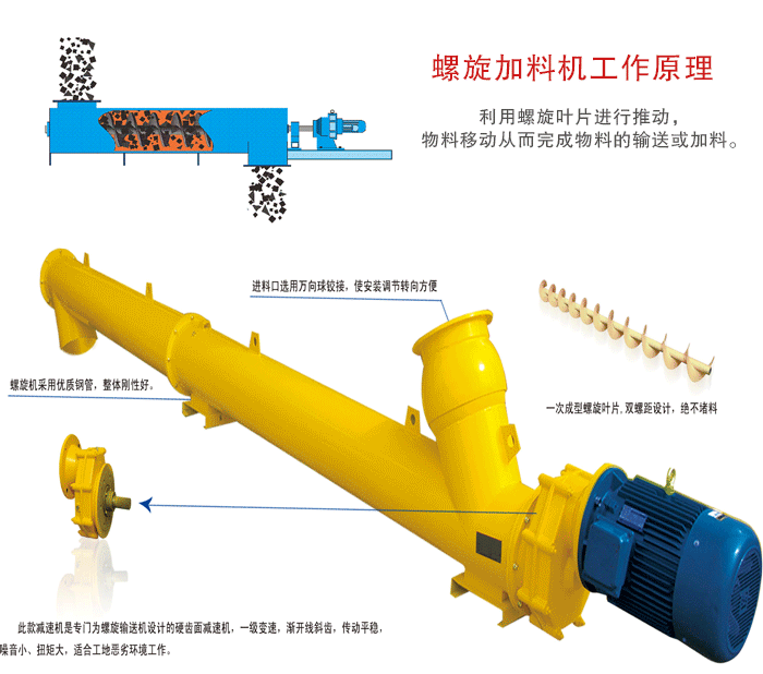 簡介:螺旋加料機又稱螺旋喂料機,主要利用螺旋的輸送功能完成,物料的添加和輸送。