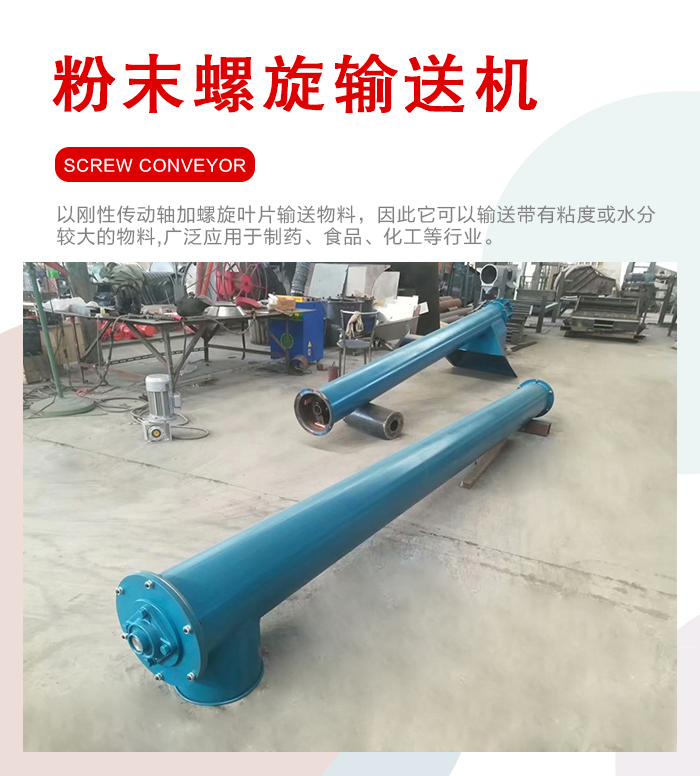 該產品是以剛性傳動軸加螺旋葉片輸送物料,因此它可以輸送帶有粘度或水分較大的物料。該機的優點,原料在輸送過程中不受污染,可在幾分鐘迅速拆裝,清洗方便。符合要求,廣泛應用于制藥、食品、化工等行業。