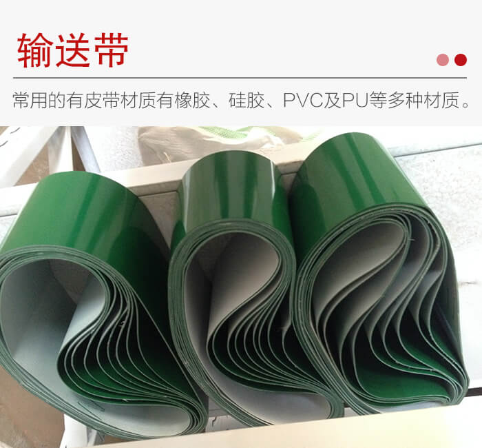 食品輸送帶材質有PVC、聚乙烯、聚炳稀、PP、塑鋼ACETAL、PE、尼龍、PA等,按照具體食品都有相應的專用輸送,除了具有抗拉強度高、曲繞性好、輕薄韌等特點外,還具備耐油、衛生、干凈衛生、易清潔等優勢,是食品行業理想的輸送帶。