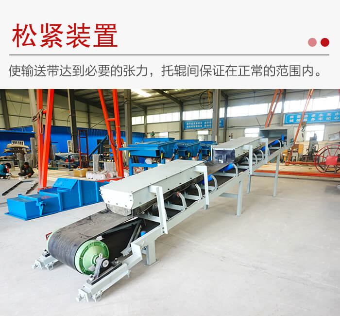 皮帶輸送機松緊裝置主要包括:包含螺旋松緊裝置、重錘松緊裝置、車式拉緊裝置。